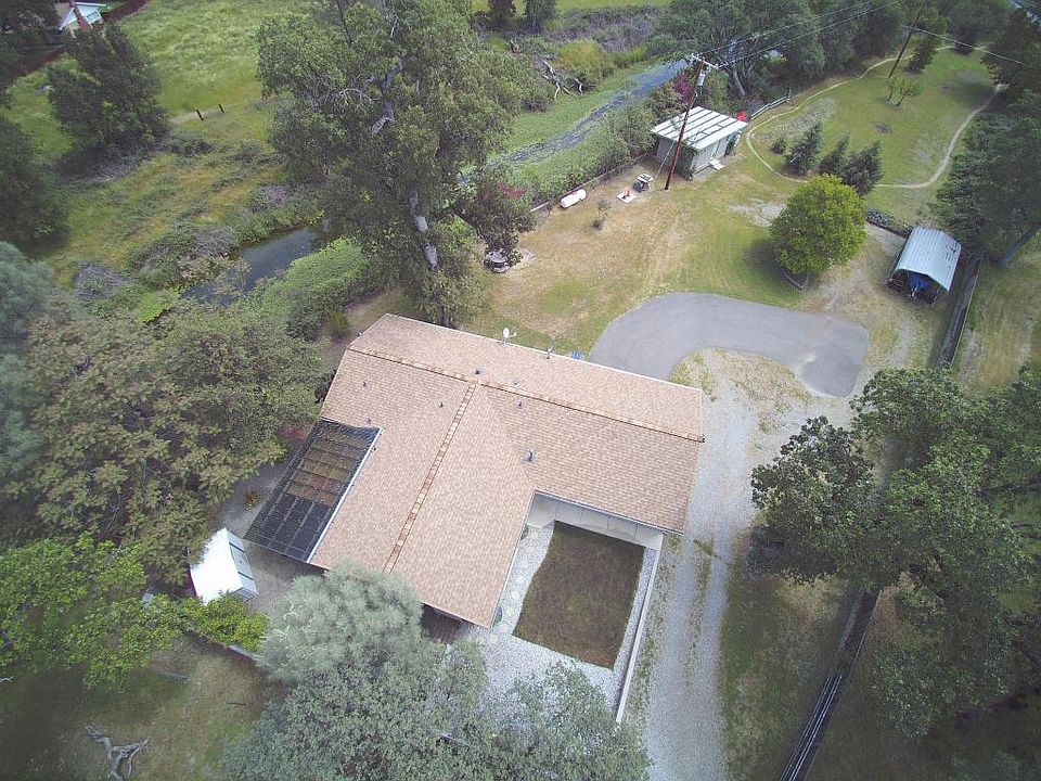 Tucked away in the heart of Bella Vista on over an acre with beautiful Dry Creek frontage, this 2009 built 3 bedroom 2 bath home is your private oasis. Shady back patio, fruit trees, 2 car garage & detached workshop. Fully fenced, hidden from the road but easy walking distance to school, groceries and post office. Mixed use zoning works for home based business. By appt only, not a drive by.