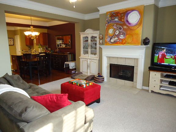Beautiful and well maintained three bedroom and two and a half bath town home. Lovely kitchen with granite counter tops, ceramic tile flooring and pantry. Dining area with hardwood flooring. Spacious living/great room with gas log fireplace. Half bathroom on main level. Laundry room off of great room. One car garage off the rear of the house. Three nice size bedrooms up along with the private master bathroom and second full bathroom. Sitting/den area at the top of the stairs. Private patio off rear. One HVAC system was replaced in 2013. New metal garage door.