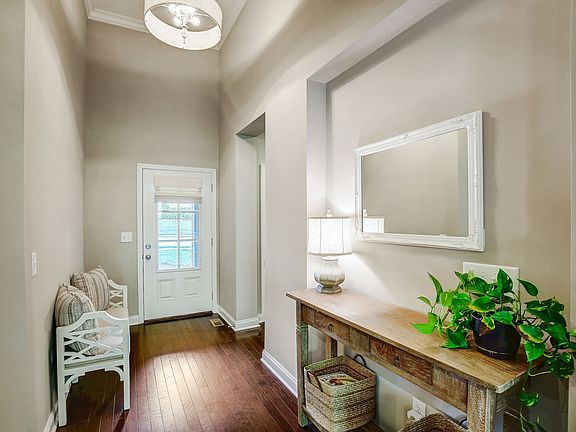 Discover the perfect blend of privacy, elegance, and modern comfort in this 4bd, 3ba home, beautifully situated against the protected land managed by the Army Corp of Engineers. Upon entering, you are welcomed by a spacious open floor plan that seamlessly integrates the living, dining, and kitchen areas. The living room features large windows with views of the wooded landscape creating a peaceful backdrop. The gourmet kitchen offers granite countertops, stainless steel appliances, and abundant storage space. The main level includes a primary bedroom with luxury en-suite bathroom with a soaking tub, separate shower, and dual vanities. Three additional well-appointed bedrooms and two full bathrooms ensure comfort for both family and guests. The second floor hosts a versatile bonus room equipped with home theater speakers. Outside, the backyard includes a patio where you can unwind and enjoy the lush, green surroundings and the unique privilege of living adjacent to conservation land.