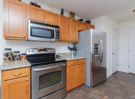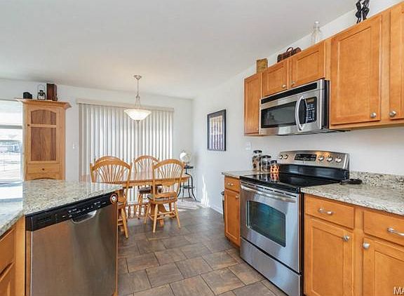 Lovely end unit town home in the heart of St. Peters. Just minutes from Rec Plex, HWY 70 or Page Ext. 5 min to mall, Hwy K & plenty of shopping & entertainment. No grass to cut or DW to shovel means more time to play or walk/run trails 100 ft from home. This 6 mos young condo has luxurious vinyl floors, upgraded light pkgs, & fin LL. W/3 beds & 4 bths gives plenty of room for guests & entertaining. Walk thru front door to a large living area open to dining & kitchen. Kitchen has granite counter tops, stainless applnces, large pantry, upgraded maple cabinets & deep inlaid sink. Head upstairs w/ wood banister to 3 two toned carpeted BR's. Large walk-in closets. Master suite has luxury bath w/soaking tub & private water closet. Laundry on 2nd level. LL is finished w/extra living space & 1/2 bath. Large storage closet & extra storage in utility room. Large side & back yard. Everything in this home is just 6 mos young. Some appliances negotiable incl refrigerator, washer & dryer.