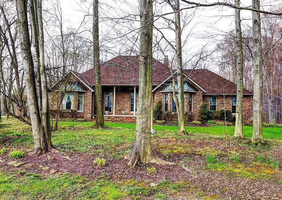 All Brick Ranch on Over 17 Acres! 3 bedrooms, 2 full baths and a full basement. Second home on property is a small custom cabin with 1 bedroom, 1 bath which makes a perfect guest house. Property offers a great setback with a long driveway that provides a magnificent approach. Inviting front porch. Vaulted ceilings provide an open feel. Eat-in kitchen features tile flooring and backsplash, counter seating and additional breakfast area. Separate dining room is great for entertaining. Living room boasts a floor to ceiling stone fireplace. Master bath features a beautiful claw foot tub, separate shower and double sinks. Two additional good sized bedrooms and another full bath. Convenient first floor laundry and mudroom combination. Full unfinished basement has a wood burner and is great space for storage, a hobby area or can be finished for additional living space. Gorgeous views of nature from every window. Two stocked ponds one in the front yard and another in the back. Every room of the home beckons you to the views beyond. This is the most extraordinary lot offering privacy and spectacular views. A truly a one-of-a-kind property. Custom built and insulated duck/chicken/rabbit house. Two additional outbuildings, one insulted and another is a barn with three oversized garage doors and a lean too. All appliances stay. America's Preferred Home Warranty included. This extraordinary property is an absolute gem!