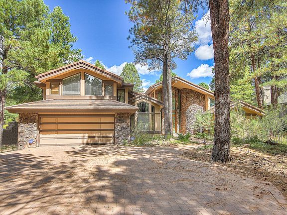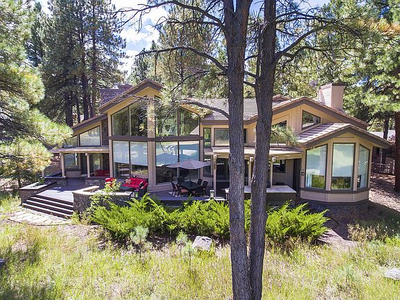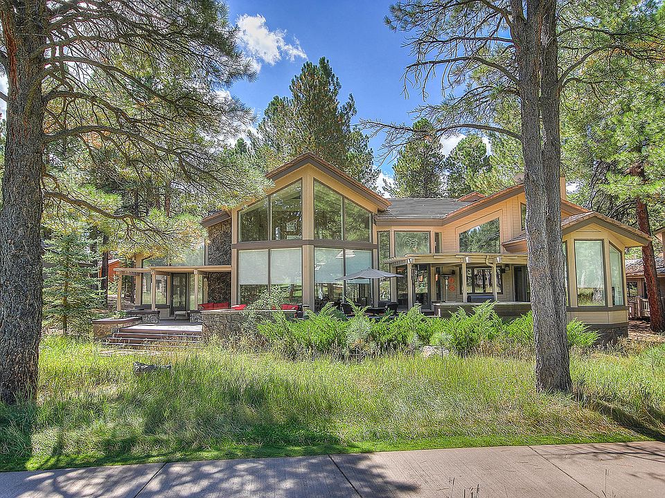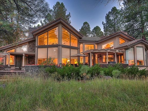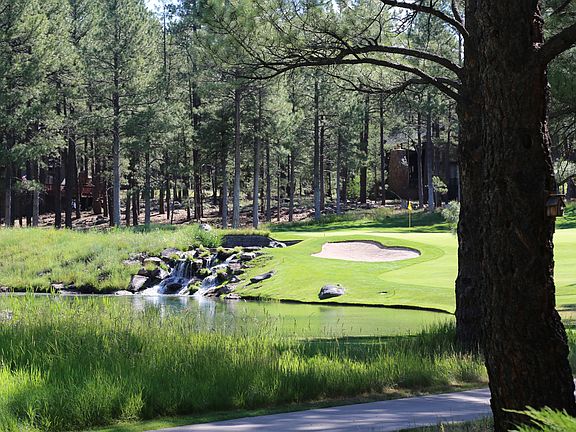 Serenity in Forest Highlands. Open concept home with huge window & patio views of the beautiful & majestic Waterfall Hole of the award winning Forest Highlands Canyon Course. Relax on the patio in the cool Ponderosa Pine forest gazing at the wildlife around the pond, waterfall and golf course. Each of the 4 bedrooms has it's own private bathroom and combined with the loft space, there is room to sleep 10 comfortably. The open floor plan is quite functional and comfortable. Enjoy dining Al Fresco on the patio with the Bar-b-que, gas fire pit, and ample seating with a view of the golfers hitting their golf balls either onto the green or into the water. Prime location for this dramatic home in the woods. Owner is an Arizona licensed real estate agent.