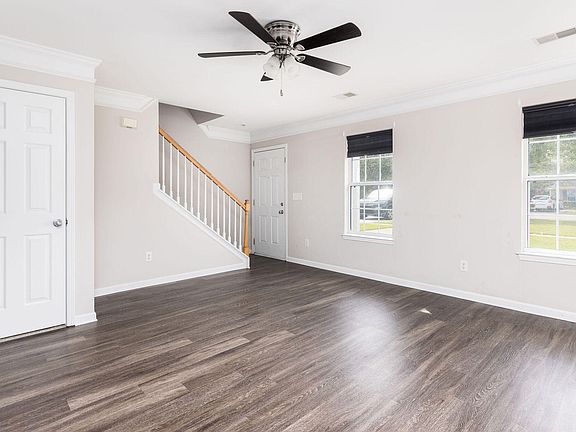 Welcome to 2253 Kings Gate in The Gates of Dunes West. This pond view townhome offers one bedroom downstairs and two upstairs, with a full bath on each floor, making for a flexible primary bedroom option. The living space downstairs is spacious and has lots of natural light. The eat-in kitchen, with its granite countertops, opens up to a sizable backyard, with a covered patio and pond view.