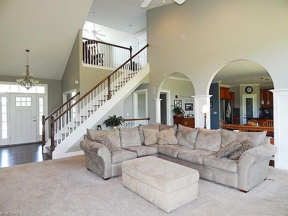 Awesome custom two story nestled on 5.5 private scenic acres. An open floor plan is complimented with a beautiful décor. The vaulted Great Room features a gas log fireplace with a heatalator. Enjoy a gourmet Kitchen complete with custom cherry cabinets, granite, large island, sitting area, pantry, and stainless steel appliances. Inviting custom arched walls covered back porch. Formal DR w/wainscot and crown molding. Beautiful wood engineered floors. Deluxe 1st floor Owner's Suite includes a glamour bath, vanity with granite, soaking tub, custom tile shower, nice walk-in closet. Upstairs you'll appreciate 2 large bedrooms with walk-in closets, full bath, plus a Loft that can be converted to a 4th bedroom. The finished walk-out basement offers extra living space. Enjoy a recreation/game area, Kitchen, full shower bath, and two great storage areas. Lower level concrete patio. 14x24 storage barn with a loft. There is a nice fenced portion of the yard.
