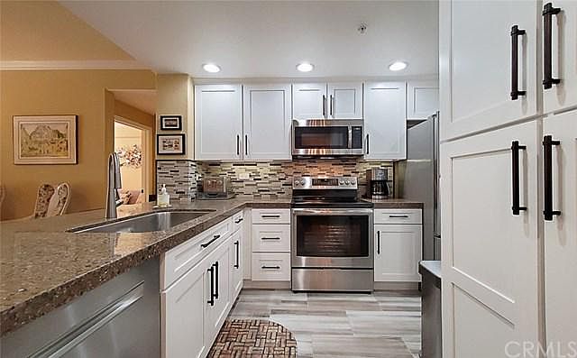 Spectacular single level condo with **100K in upgrades**. A rare find with a formal dining room that has been renovated with some of the nicest finishes you will ever see!! Tucked away in the back of the complex for that extra privacy. Guard gated!! Spacious open concept that connects the kitchen, formal dining, & huge living room. The upgrades are incredible with a Chef's kitchen that has real white wood cabinets with under cabinet lights & soft close. Quartz counters, custom back splash, stainless steel appliances, recessed lights, & nice fixtures. Real bamboo floors, custom porcelain tile, & upgraded carpet. Other features included crown molding, panel doors, walk-in closets, high-end appliances, ceiling fans, inside laundry. Custom shutters & double pane windows. Huge master suite with a custom walk in closet & organizers & a private access to the back patio. Master bath is AMAZING with double sinks, quartz countertops, custom backsplash, custom porcelain floor, & custom white cabinets. Custom shower that is huge with custom tile, rain shower head, recessed lights, & fans with censors. Guest bath is highly upgraded with a custom tub/combo shower that has custom tile in shower, quartz countertops, custom white cabinets, custom porcelain tile floors that match shower, custom backsplash, & recessed lights. Guest bedroom is oversized. Metropolitan that offers resort style amenities, gym equipment was recently upgraded, pool, spa, a kitchen with a clubhouse, and a fireplace.