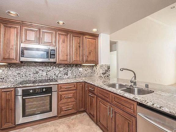 Resort style living at the guard gated Metropolitan in Irvine. This highly upgraded Penthouse is the nicest unit in the complex with 13' high soaring ceilings. Two suites and two bathrooms separated by a spacious living room and dining area. Master bedroom and bath includes a large walk-in shower, an oval Jacuzzi bathtub, dual custom sinks with granite counters and a large walk in closet. Guest suite has a walk in closet and a large walk in shower in bathroom. There is also a spacious office or den. This property was completely remodeled and it is the most unique and nicest unit in the Metropolitan. The bathrooms have been completely reconfigured to contain stone and rolled marble showers, granite counters and custom sinks and faucets. The kitchen has been opened up to allow for twice the counter space, a much more accessible refrigerator, under counter washer/dryer and finished with top quality appliances and cabinetry. The flooring is travertine with inlays and vinyl flooring. No carpet! The Metropolitan offers a guarded entrance, beautiful tropical landscape, a large pool, very spacious spa, clubhouse and fitness center. Water and gas are included. All tenant is responsible for is electricity and cable/internet if so desired. 2 assigned parking spots in underground parking garage. Plenty of open parking for guests. No pets. No smoking.