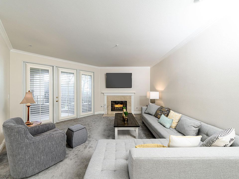 Resort style living at The Metropolitan. Just finished a complete remodel. Beautiful new carpeting and stone tile flooring throughout. Kitchen includes all new stainless appliances, new custom cabinets, quartz counters and glass tile backsplash. Custom made and fitted ceramic double wide sink and brushed nickel faucets. All new recessed LED lighting. Gorgeous gas fired fireplace with marble casing and wood mantle. 9 foot high ceilings throughout. This unit is only one with 3 bathrooms! This model has two master suites. First master bedroom has enormous walk in closet. Bathroom has custom dual sink vanity with quartz counter tops, new designer sinks and brushed nickel faucets. Custom built walk in shower fished in beautiful stone and pebble flooring with frameless glass enclosure. Second master bedroom has dual closets, one which is walk in. Bathroom has custom dual sink vanity with quartz counter tops, new designer sinks and brushed nickel faucets. Large new soaking tub with matching brushed nickel roman tub faucet. Third bathroom is located off entrance hallway which allows guest to use bathroom without going into or through and of the 2 master bedrooms. It includes a shower custom built vanity and low flow toilet. Large tiled deck off living room and second master bedroom. As well, this is one of few units that contains large storage room off of patio. This is a big item as condos are always short on storage space. This unit is fully furnished and all furniture is brand new! It includes 3 new flat screen TV's. Just bring your clothes and toothbrush! This is a must see! The complex includes a guard, security gated, gorgeous sparkling pool, extra-large spa, gym with newer equipment, clubhouse, tropical landscaping and 2 assigned parking spots. Can be leased unfurnished as well Owner pays HOA fee and it includes gas, water, hot water and trash. Tenant pays only electricity and internet/TV