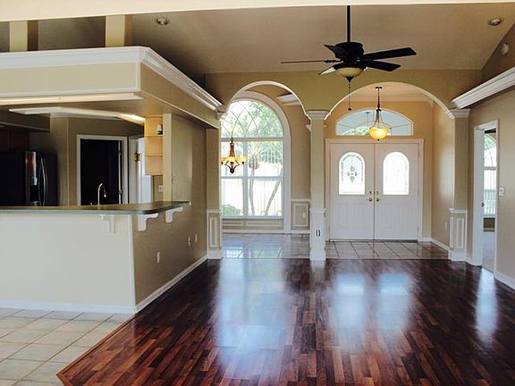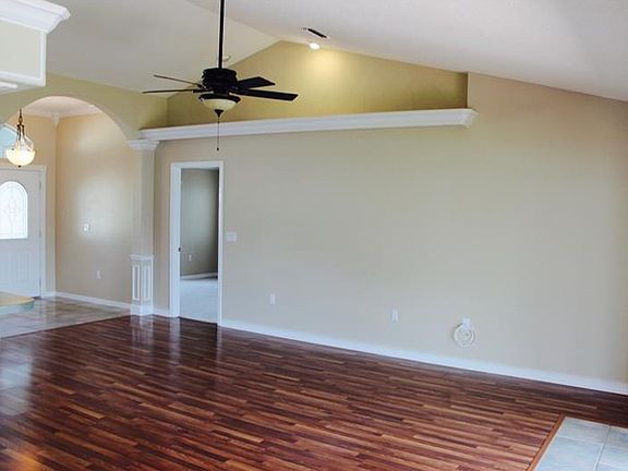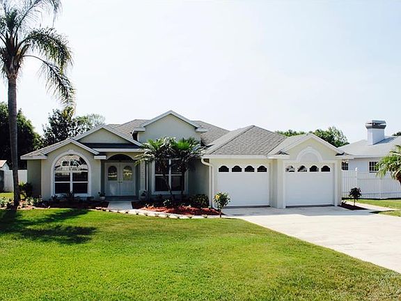Absolutely stunning!! Former Parade of Homes Winner! The home has a large kitchen with lots of cabinet and counter space, along with stainless steel appliances and a little breakfast nook area with an additional built in cabinet. The living room has beautiful vaulted ceilings and new laminate flooring. There is a formal dining room with custom trim work and 12 ft ceilings. All new carpet flooring has been installed in all bedrooms. Both guest bedrooms have beautiful dark laminate flooring. Master bedroom has an additional cut out, that would be perfect for a nursery, or office/den within the master bedroom. The Master Bathroom has tons of storage, dual sinks, a garden tub, walk in shower, walk in closet and private commode. There is a large screened in lanai with brick pavers, an additional pavered patio that is open and perfect for entertaining and outdoor living!! The backyard is completely fenced in with privacy fence, a large storage shed, gutters and irrigation to keep up with a beautiful yard! The AC unit is new! Exterior and Interior of the home has been recently painted top to bottom!! All new landscaping just installed. This is a must see!!!