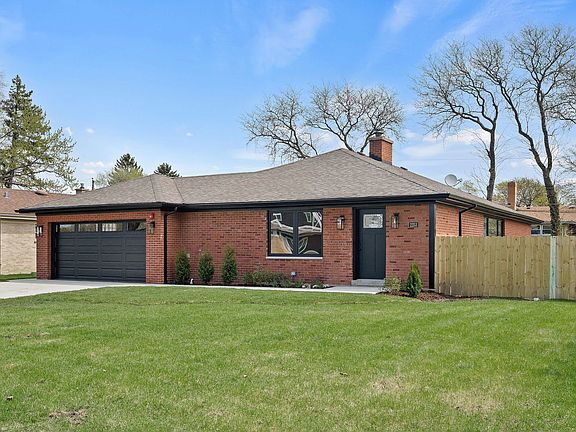 Sophisticated Living in Park Ridge! This oversized, professionally designed and renovated ranch style home has been updated for today's contemporary lifestyle. The first floor's open concept shows off the gleaming, white oak flooring throughout. The show-stopping kitchen features upgraded appliances, beautiful two-toned wood cabinetry, leathered quartz counters, designer lighting, and custom tile work. A sharp, black brick fireplace grounds the spacious living room. The primary suite includes a walk-in closet, large patio door out to the backyard, and en-suite bath with double sinks, high-end lighting, and large walk-in shower. The main floor also includes two other bedrooms, a stunning bath, and attached 2 car garage. The lower level consists of a large recreation room with wet bar and beverage fridge, full bedroom and bathroom, and laundry with storage space. The home sits on an oversized lot with brand new driveway, fully fenced-in yard, and large wood composite deck. The entire home was reimagined to the highest standard of design and construction. Each element was hand selected and curated to create truly a one of a kind home!