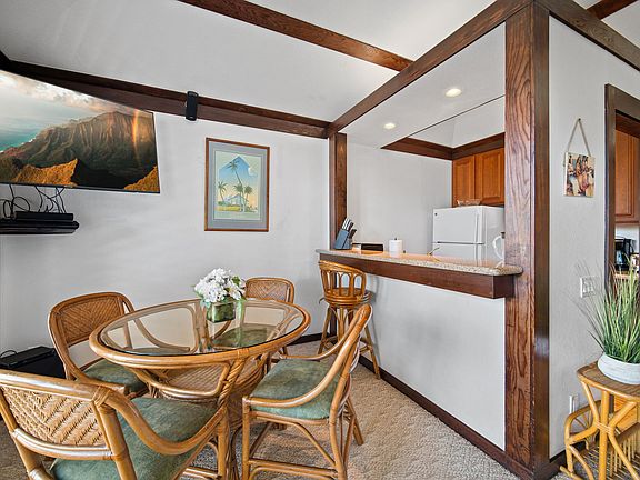 This is a leasehold property. Fantastic ground floor unit at Kiahuna Plantation. Walk out onto the expansive greenspace right off your lanai and just a short walk to the world-class beach. One bedroom, a full bathroom upgraded with a tiled tub surround and granite vanity, plus a full kitchen upgraded with matching granite counters and a dishwasher. Jalousie (louvered) windows throughout, this condo stays nice and breezy and is the perfect vacation oasis.