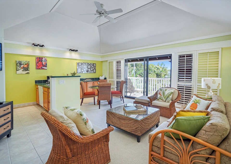 Kiahuna Plantation has resort comfort and amenities with the additional perks of a condominium. This is a beautiful remodeled second floor unit, fully furnished, 1 bedroom, 1 bath condo with Garden Views. It is bright, airy, beachy, comfy and feels larger than the rest of the units because of the open concept of the kitchen and living room and vaulted ceilings.Updates: Tiled floors and bathroom, recently paint, plantation style shutters, soft-close solid oak cabinetry, locked owners storage closet, new California King mattress, new bedroom furniture and beautiful furniture throughout the unit, focus lighting making it brighter, new sliding glass door, new hybrid water heater, newer appliances.You will love the peekaboo ocean and garden view from your lanai. Being on the top floor and the lanai bring lots of natural light into your unit. The location of the unit provides for an easy walk to the beach and to the shopping centers, and a close drive to world famous golf courses, more shopping and restaurants. The property is a leasehold property.Amenities include:High speed wireless internetCable TV with TVs in the living room and bedroomMembership with Poipu Beach Athletic Club, fitness club and poolFree parking24 hour securityOn-site management companiesPlantation Garden Restaurant