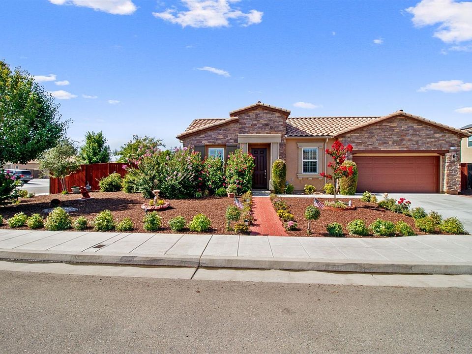 A new home for you and some free electricity too! This energy efficient De Young model 210 includes a completely paid solar lease - free electricity for the remainder of the lease and easy transfer. Enjoy your gourmet kitchen with 5 burner gas stove open to the great room, the open air courtyard that brings light to the interior of the home, 10 foot ceilings, fireplace, formal dining, huge master suite, and tons of outdoor space with both a covered and uncovered custom concrete patio, 10x12 storage shed and more. Add in RV parking on a large corner lot and come explore the many ways you can enjoy your new home. Shopping and services just over a mile away. Parks and golf are close and there are 80 places to eat within 5 miles. Add in top Clovis schools and you're home. This home is fire sprinklered for safety and there's even a fire hydrant nearby.