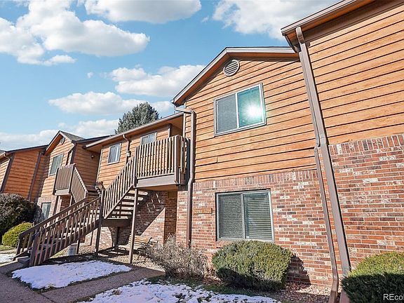 As you step inside, you’ll be welcomed by an open floor plan that is bright and airy, featuring cathedral ceilings. The vinyl plank flooring combines the elegance of hardwood with the durability of vinyl, making it both aesthetically pleasing and functional. The centerpiece of the living room is a charming wood-burning brick fireplace, which creates a warm and inviting ambiance—perfect for Colorado’s cooler evenings. It’s an ideal spot for relaxing with a book or enjoying a cozy night in with loved ones. Retreat to the comfort of the primary suite, which includes an attached bathroom and a generously sized walk-in closet, providing ample space for storage and organization. The additional bedroom offers flexibility and can be used as a guest room, home office, or whatever suits your needs. With two bathrooms, this layout is perfect for roommates or families.