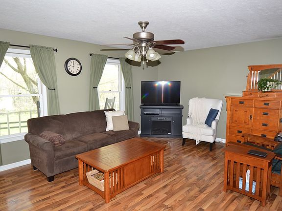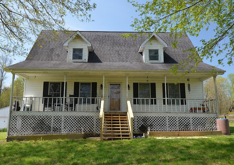 Want privacy? This 3 bedroom, 2 bath home sits on 7.7 acres, and has a beautiful view form every window! There is a large living room, dining room, & kitchen, open staircase to the upper level with 2 bedrooms &^ full bath. Large front porch, back deck, storm shelter, detached garage, and outbuilding.