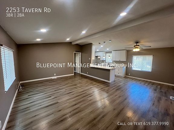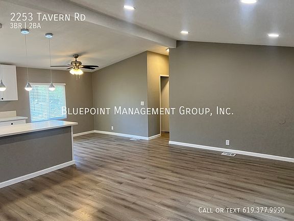 Charming Alpine Retreat 2253 Tavern Rd Welcome to this beautifully updated 3-bedroom, 2-bathroom home in the heart of Alpine! Situated on a generous lot, this spacious property offers comfort, style, and convenience perfect for families, entertainers, and outdoor enthusiasts alike. Step inside to discover high ceilings and an open layout that creates a light and airy feel throughout. The home features laminate flooring, dual pane windows with blinds, recessed lighting, and ceiling fans in every room for year-round comfort. The mirror closet doors add a touch of elegance while enhancing the sense of space. The modern kitchen boasts quartz countertops, stainless steel appliances, and ample cabinet space ideal for home cooks and hosting. Washer and dryer hookups are conveniently located for everyday ease. Outside, you'll find an attached 2-car garage, RV parking, and plenty of room for pets to roam yes, pets are welcome! Whether you're relaxing indoors or enjoying the outdoors, this home offers the perfect blend of functionality and charm. Don't miss this opportunity to own a slice of Alpine tranquility with all the upgrades you're looking for. 660 credit score required for all applicants Bluepoint Management Group, Inc. DRE #01978002 Equal Housing Opportunity It is illegal to discriminate against or harass someone because of a protected characteristic, such as their gender, race, national origin, sexual orientation, gender identity, or religion. (For a complete list of protected characteristics, see the section below titled "Protected Characteristics") including housing choice voucher 'Section 8' Tenant pays for all utilities.