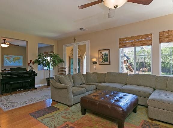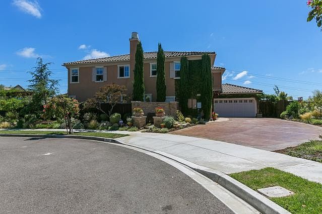 La Costa Greens in Carlsbad! Located at the end of a cul-de-sac on a flat 11,000 sf. lot with room for a pool. 4 bedrooms each has its own attached bath, plus an office, bonus room, and loft. Large kitchen with double ovens and stainless steel appliances. The backyard is amazing and a great place for entertaining with family or friends. In addition to the BBQ and fireplace, there is spa, water feature plus fruit trees and vegetable gardens. The Presidio offers a pool, gym, clubhouse, and tennis courts.