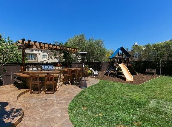 La Costa Greens in Carlsbad! Located at the end of a cul-de-sac on a flat 11,000 sf. lot with room for a pool. 4 bedrooms each has it's own attached bath, plus an office, bonus room, & loft. Large kitchen with double ovens & stainless steel appliances. The backyard is amazing and a great place for entertaining with family or friends. In addition to the BBQ and fireplace, there is spa, water feature plus fruit trees & vegetable gardens. The Presidio offers a pool, gym, clubhouse, & tennis courts.