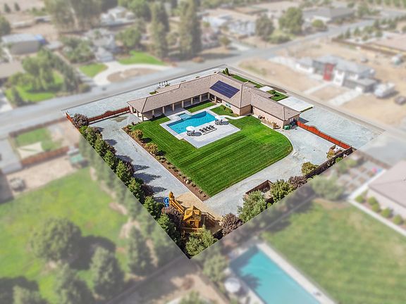 Who needs to stay at a resort when your home feels like one? This 3 bed/3.5 bath house is nothing short of remarkable - sitting on over 1 acre of a lot, paid solar, RV access, paid full house water filtration, salt water pool, alarm system with no monthly subscription, full security system, automatic motion interior lighting, exterior lighting on timer, new carpet, and MORE! Every inch of this property is meticulously maintained and perfectly crafted. The chef's kitchen hosts many impressive features, including stainless steel appliances, double ovens, 6-burner range, wine cooler, and walk-in pantry. Open to the living room with its built-in entertainment center and coffered ceiling to match the master suite. There is a bonus room just off the garage currently being used as a gym, but can be used as an additional office space in addition to the indoor home office. Both spare bedrooms are adjoined with the jack-and-jill restroom, and their own walk-in closets with built-ins. The opulent master suite boasts an oversized walk-in closet with built-ins and closet island, his & hers sinks, large step-in shower, soaking tub, and French doors to the backyard. The vast backyard will keep the entertaining flowing, with the large covered patio, heated salt water pool, pool house, and restroom just off the pool house. With this property, you'll enjoy the luxurious country feel, while remaining close to town and shopping. There's so much more to this property that you will love, and you won't want to hesitate to see it in person.