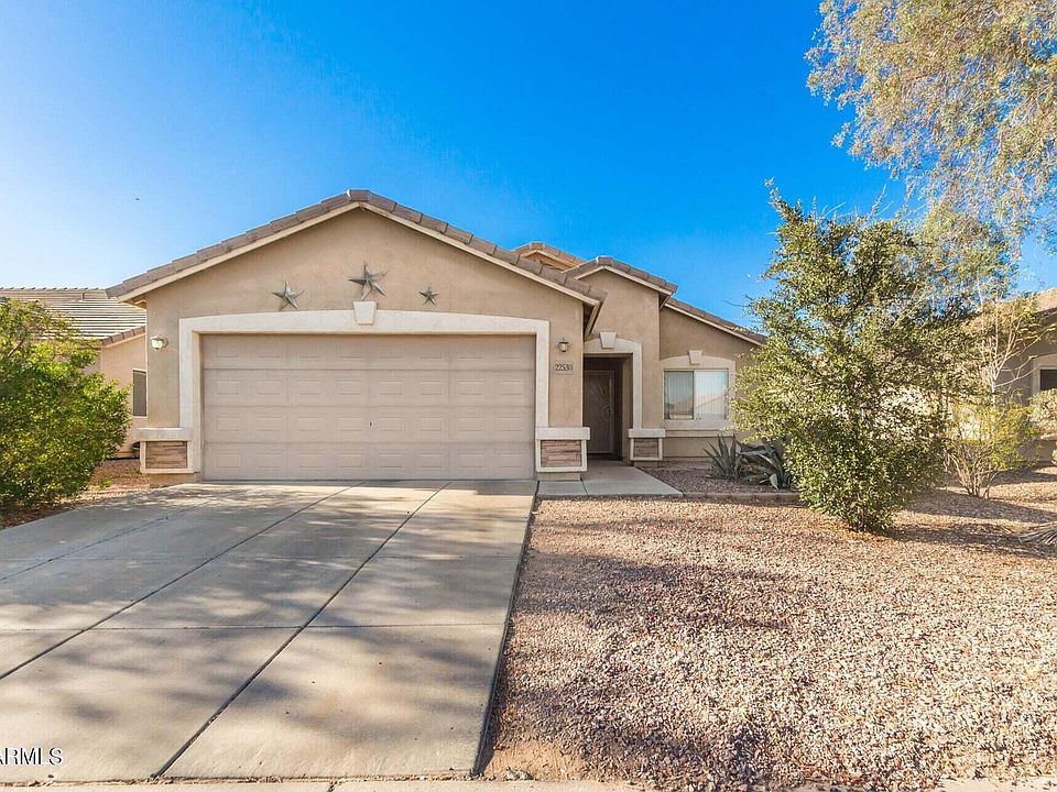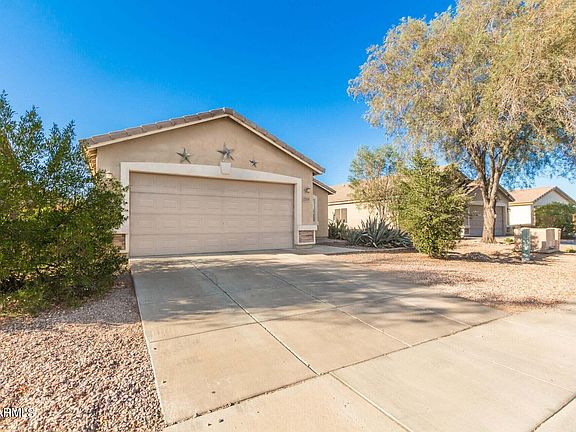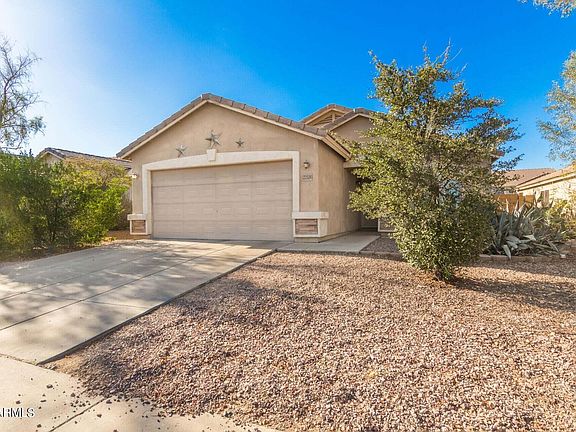 HUGE price reduction! Charming 3 bed, 2 bath home situated in the Sundance Community. Upon entering, you'll be welcomed by the light and bright floor plan with a neutral pallet throughout. The spacious kitchen leads to the peaceful backyard with a covered patio, North/South exposure, and plenty of room for your finishing touches. The master bedroom features large double closets and a full ensuite bathroom with a dual sink vanity. Furthermore, the home comes equipped with APS solar panels owned and maintained by APS (no lease or loan) which saves approximately $30/month on electrical bills. Schedule a showing today!