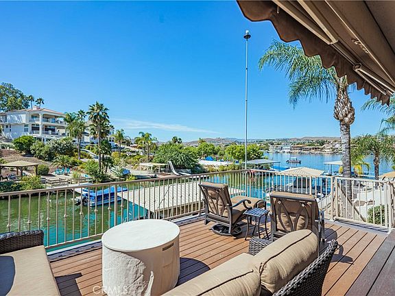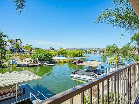 Welcome to this exquisite 'Main Lake' waterfront retreat nestled in the prestigious Gated Community of Canyon lake. This stunning house boasts an array of luxurious features from the moment you step inside. Paid Solar, low low power bill. The main floor has 3 bedrooms, one is a master suite, or take the elevator upstairs & you will find a grand master suite. As you enter you will be greeted by high end finishes and impeccable craftsmanship throughout. The elegant bar & well appointed kitchen, complete with a convenient Island, are ideal for entertaining guests. The living room features a propane gas fireplace, adding warmth and ambience to the heart of the home. Natural finishes remain timeless. The master bath is a sanctuary of relaxation, featuring a solid granite entry and a shower that exudes luxury and style. Step outside and discover an outdoor oasis, east facing providing shade and tranquil water views. An outdoor Viking BBQ beckons you the joys of alfresco dining. Relax and unwind on the rear deck, protected by an extended electric-powered sunshade, and savor the picturesque surroundings. Boating enthusiasts will enjoy the newer covered boat dock with a lift. Water frontage is approx 73 ft. Additional features include newly installed heat lamps, energy efficient LED lighting throughout, and 21 solar panels on the roof! Every corner of this magnificent home has been thoughtfully designed and meticulously maintained. Lets not forget the oversized 3 car garage, custom flooring, & cabinets. Both decks have 250 amps for a spa. Security system has interval zoning. Walls are 2" X 6", so stay cooler inside as you enjoy summer fun with friends and family. 2 citrus trees, a lemon & a lime planted in rear yard. It's an exceptional property, on a cul-de-sac street. Access the amenities, including boating, water sports, golf, and more.