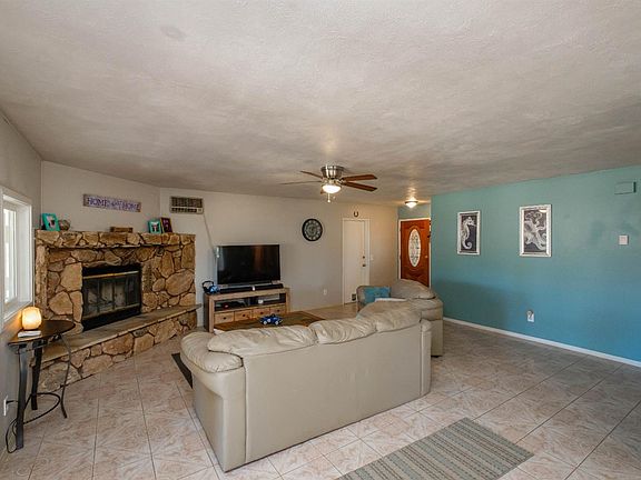 Gorgeus home in Granite Hills High School district. Beautiful Mountain View's. Quiet neighborhood. Upgraded tile flooring throughout with new wood-look tile floor in kitchen. Carpeted bedrooms. Clean and freshly painted inside and out. Renovated bathroom. Warm, cozy real wood burning corner fireplace with raised hearth. Very inviting backyard with large shade covered patio, storage shed, BBQ island and complete perimeter fencing: BLOCK WALL & wood; double iron gates on either side of property for easy RV access. Separately fenced dog run. Dang near 1/2 acre lot. Owner is ready to move yesterday! Easily add on or use existing enclose patio as 3rd bedroom.