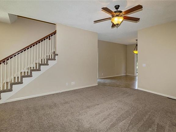 Town Home TREMENDOUS! Totally move-in ready! This home offers stellar condition*Fantastic placement in community! Backs to privacy & green space w/Culdesac guest parking right outside the door:) Ultra livable end unit w/incredible location for amenities-great De Soto Schools*This 12 yr old is enhanced w/Fresh INT paint*new carpet/flooring*new slider at Patio door*refreshed landscaping*Egress basement ready to finish*E Z bedrm level laundry~washer/dryer stays*Plus...fast hi-way access to Anywhere! Be quick~see now!