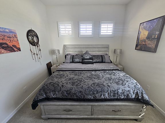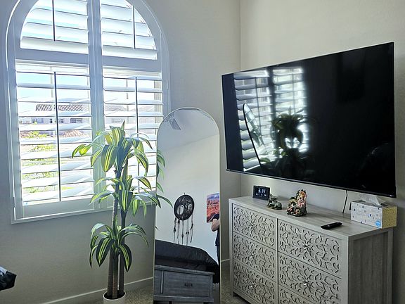 Room A, Guest suite Your Private Retreat Step into comfort with this spacious king suite, designed for rest and recharge. The bed is layered in soft bedding, flanked by nightstands with easy-access charging ports (USB + USB-C), blackout shutters, and ambient lighting that sets the mood just right. A 65" Smart TV, full-length mirror, and dresser round out the essentials, everything feels thoughtfully arranged and easy to settle into.