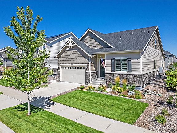Location, Location, Location! 5 minutes from Downtown Parker, 5 mins from 3 golf courses, 5 mins to Southlands Mall! Better than new & SUPER CLEAN - perfectly situated in Inspiration's prestigious Rockinghorse NON 55+ community. This home with a massive fully finished basement including 2 bedrooms & a bathroom is PERFECT for today’s generational living. The kids can come back home! You're greeted by 10ft ceilings & an inviting open floor plan with a spacious study, laundry room & powder room. Continue through to the Great Room, highlighted by an impressive floor to ceiling fireplace which flows seamlessly to a gourmet kitchen complete with oversized quartz island/breakfast bar, stainless steel appliances, ample cabinet space with pull outs & upgraded soft close doors, gorgeous backsplash, dining nook & pantry. The open layout of the main floor flows effortlessly with a formal dining room w/ upgraded lighting, LVF flooring & designer window coverings ($$). Easy, “no stairs living” IS possible w/ main floor primary bedroom suite, complete w/ a luxurious bathroom adjoined by a spacious walk-in closet w/ built in shelving. Upstairs, discover 2 generous sized bedrooms, both outfitted with walk-in closets, built in shelving & convenient full bath w/ dual sinks. Retreat to the backyard oasis & expansive covered patio. Professionally landscaped, fully-fenced bckyrd, with beautiful plantings of lush bushes & flowers making it the ideal space for entertaining. SOUTH-FACING (no shoveling snow!) Frequent traveler? Easy access to E470 & only 20 min drive to DIA. This meticulous home features 3 floors of living spaces. (YES! A HARD TO FIND - FINISHED BASEMENT!) It’s outfitted with a large finished basement w/ 9 ft ceilings & ample room to entertain (it's plumbed for your wet bar or full kitchen) & 2 add'l bdrms - both w/ walk-in closets. It’s so clean – you could eat off the epoxied garage floor! Enjoy award winning Douglas County Schools.