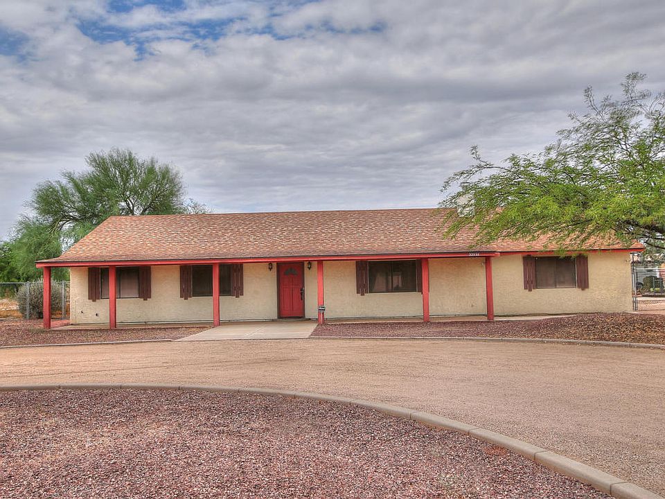 BEAUTIFUL 4 BEDROOM HORSE PROPERTY ON 1 ACRE! NO HOA! PLENTY OF ROOM TO PARK YOUR CARS, RV, TRAILER, ETC! FULLY FENCED BACK YARD WITH TWO RV GATES! This spacious home features vaulted ceilings, Great Room with fireplace, large 4th bedroom that can also be used as a bonus/game room, tile flooring, breakfast bar, upgraded Kitchen sink, ceiling fans, custom two-tone paint, pre-wire for surround sound, large Laundry Room, corian countertop at Guest Bath, keypad option at front door, extended covered patios in front & back, storage shed, large back yard lawn, RV hookup, horse stall, outdoor 1/2 bath, basketball court slab, & much more! Great location near shopping, schools, and the I-10 freeway! Surround sound speakers in Great Room and storage container in back yard do not convey.