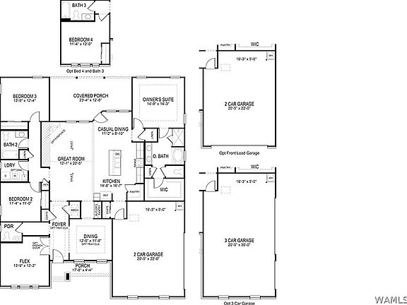- Attached garage spaces: 3