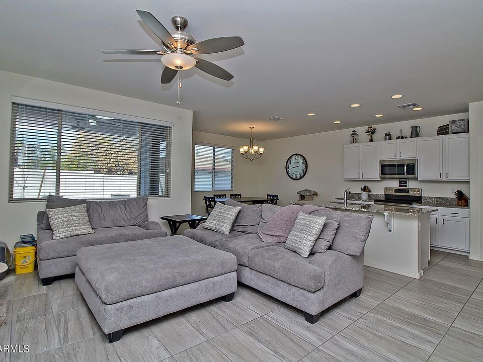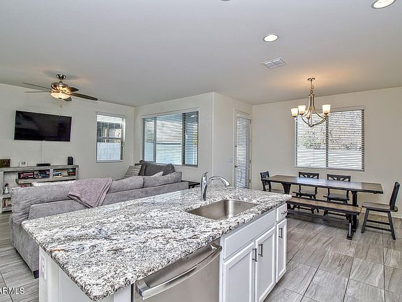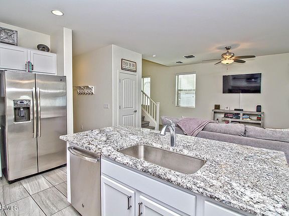 This fantastic 2018 townhouse/twin home is LIGHT & BRIGHT w/ modern interior finishes, and features CONTEMPORARY TILE floors, crisp light paint and an OPEN CONCEPT floorplan. In the kitchen, enjoy sparkling UPGRADED GRANITE counters, stainless steel appliances, gorgeous WHITE CABINETS and a center island with breakfast bar. This space is perfect for gathering with friends and family in the adjacent family room! Upstairs you will find a spacious, VERSATILE LOFT perfect for working from home, & a HUGE master bedroom with a large walk in closet and DUAL SINKS. Step outside to your covered patio & RESORT STYLE pavers and turf designed backyard, with a cozy GAS FIREPIT for romantic cool evenings! The oversized 2 car garage has plenty of room for SUV vehicles & storage, and with dining,