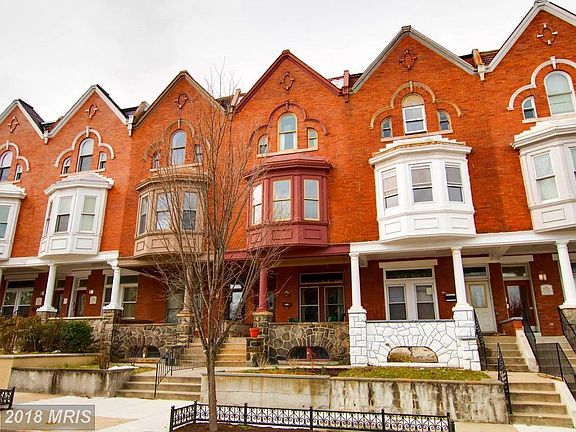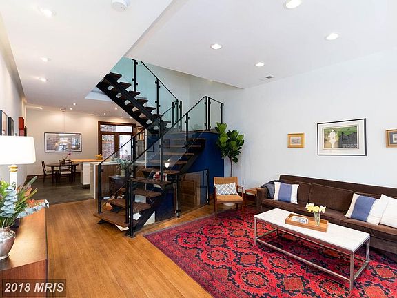 Modern Style in Reservoir Hill! Large historic rowhome with open floor plan, custom steel and glass staircase, green energy features, radiant floor heat, en suite bath for three bedrooms + an addtn'l upper floor den/bedroom, laundry on 2nd floor, skylights. 1 bed/two story RENTAL UNIT in REAR OF HOUSE with separate access from rear of property.