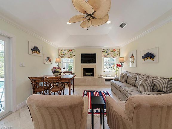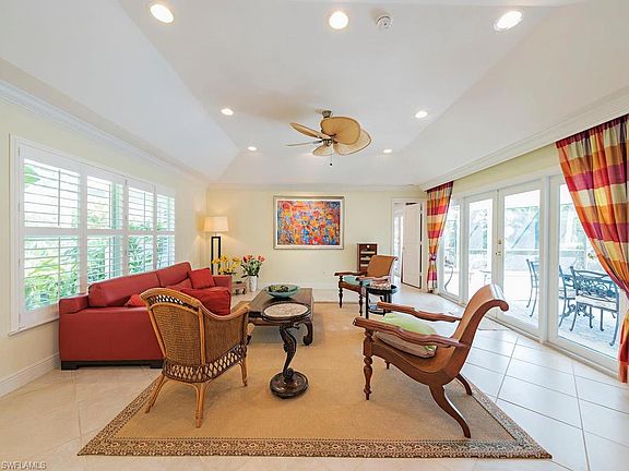 H.15120 Enjoy total tranquility at the pool with it's panoramic lake view and SW exposure. The unique decor in this charming, very well kept home is a MUST SEE! The garden teems up with beautiful, tropical plants and manicured lawn. All windows and doors have impact glass and there are also electric shutters on the lanai. Crown molding and tiles through-out the house, fireplace and a new roof in 2018. Located in a cul-de-sac. Only 4 miles from the beach and all the fantastic restaurants and shopping on 5TH Ave South.Please read remarks regarding the irrigation water.