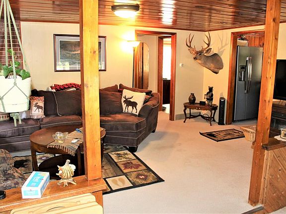 Country living at it's BEST! 5.8 wooded acres on blacktop road. Wakeley Lake Recreational Property across the road. Knotty pine interior, updated metal roof/ windows & furnace. 12 X 22 Workshop, 12 X 18 barn with Lean-to on each side. 450 Sq. Ft., & rear deck with hot tub!