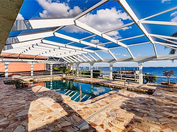 Immaculate SOUTHERN EXPOSURE RIVERFRONT POOL home w/ expansive water views of the Caloosahatchee River. Enjoy the incredible water views from any location in the main living area through a wall of Hurricane Impact sliders that span the length of the rear of the home. This beautifully updated home boast an oversized chef's kitchen w/ all wood cabinets, 18 foot cathedral ceilings, BRAND NEW ROOF IN 2018, hurricane impact doors for FULL HURRICANE PROTECTION, upper and lower master suites, enormous screened rear patio w/ HUGE 9' deep pool, over 3,000 sf of living area, oversized 3 car garage, electric storm shutters, huge patio off of upper master, dock w/ boat lift, captain's walk, deep water sailboat Gulf Access and MUCH MORE! Centrally located on a quiet well established street with a short drive to shopping, dining, beaches, and everything SWFL has to offer. This is an absolute must see home! This home takes advantage of everything the Florida lifestyle is about - boating, fishing, & enjoying the GORGEOUS views of the water from your pool! Be sure to call today to schedule your private showing!