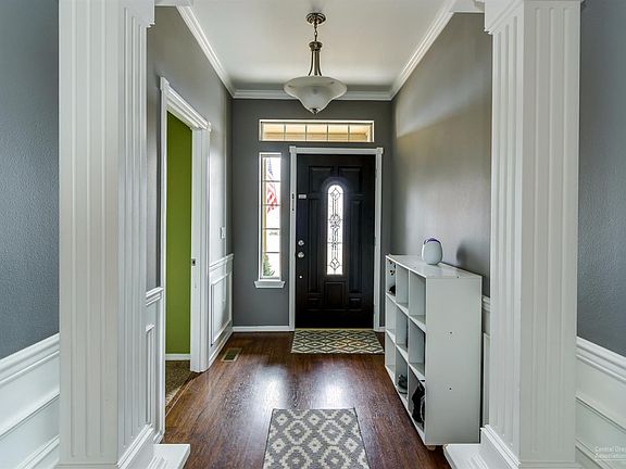 Situated on a corner lot, this home is unique in style. Entirely remodeled as of 2014. Laminate flooring flows throughout the main living area, with wainscoting and pillars decorating entry hall. Brand new carpet in bedrooms. New cabinets throughout. Master suite features coffered ceilings & walk-in closet. Laundry room with pocket door to maximize space. Gas fireplace in the great room with vaulted ceilings for an open living area. Forced gas heat with central air. Come see this warm and inviting space.