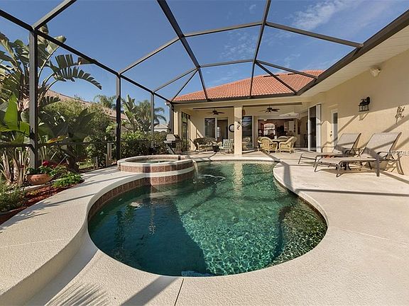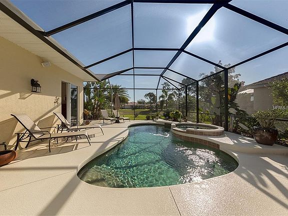 Welcome to this gorgeous 3 Bedroom, 2 Baths pool home with 3-car garage and serene lake view. As you drive up you will love the curve appeal and elevation of the home. The front porch is perfectly set up for seating to watch your flower gardens. Through the doors, the inviting formal living room and dining area will display beautiful built-ins and plantation shutters. Beyond the disappearing sliding glass doors is the beautiful pool and spa built in 2010. Don't worry, it is heated, and with fountain and a salt water system. The pool area was situated to have plenty of room for entertaining and enjoy the water view. The home is a split floor plan and 2nd bath is situated next to the two other bedrooms and easy access to the pool. The newly updated kitchen was custom made with plenty of cupboards. The chef will love the spacious granite counters and big island with plenty of space for bar stools. In addition, you will enjoy cooking in gas. The spacious 3-car garage has plenty of room for your golf cart and extra toys. The master bedroom and bath are conveniently situated for privacy and relaxation. Imagine yourself with quiet time in your own spa hot tub or your stylish shower. The neutral colors on the walls and flooring will be an easy transition. Come see this coveted gated golfing community, home of Charlotte Harbor National golf course. Enjoy all the amenities Bobcat Trail has to offer, from tennis to golfing, to shopping, restaurants, medical facilities, US 41 and I-75, and just minutes to Beaches.