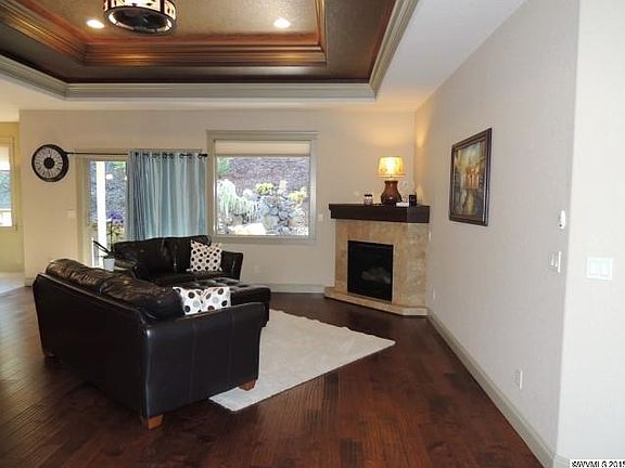 Luxury single level home with Bonus Theater Room upstairs top quality materials throughout. Trayed ceilings and gas fireplace, gourmet kitchen with double islands. Master Suite has walk-in closet, jetted tub, shower, private covered patio with water feature. A must see!