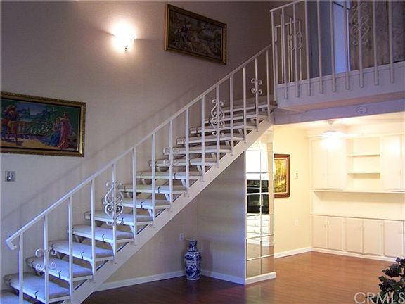 Two story Seville model furnished with new paint, oven, cook top and downstairs flooring. Private patio off living-room with outside storage. Loft has sitting area and the upstairs Master Bedroom has patio. 55+ community. Close to Gate 6 for easy access to Freeway and nearby shopping.