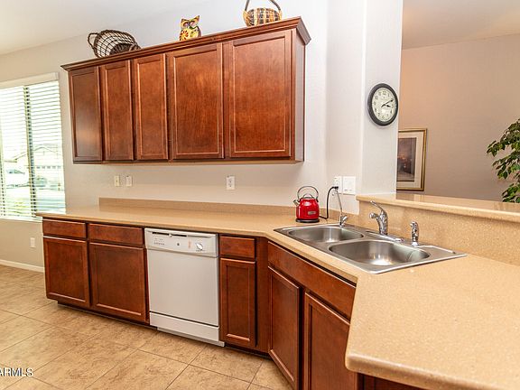 Welcome Home!!! This gorgeous 2 bedroom 2 bath home at the 55+ active adult community of Sundance in Buckeye is in a fantastic location. Close to restaurants, shopping, parks, golfing at Sundance Golf Club & easy access to the I-10 freeway. You'll love the layout of this home. Your kitchen offers Corian counter tops, a breakfast bar, white appliances, filtered water, a pantry & crown molding cabinetry for storage & organization. Your spacious master suite offers a plethora of natural light, a walk in closet, dual vanity & a walk in shower. This corner lot home also offers upgraded ceiling fans, a newer AC unit that was installed in 2021, spray foam insulation to help with heating & cooling, a den/office area to utilize, tile & wood laminate flooring (no carpet), as well as a 2 car garage with a water softener & a low maintenance backyard with a covered patio, extended pavers & mature landscaping.