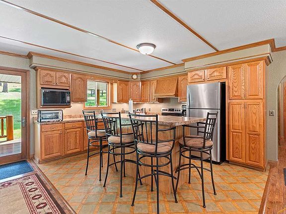 Listed by Kasondra Brooke, Realtor - Keller Williams Realty Black Hills (605) 641-9540. Exquisite wooded & secluded retreat boasting main floor living in this custom built ranch, perfectly nestled on over 3 acres adjacent to forest service land! Desirable open concept main floor highlights an eat-in kitchen gleaming with cabinets, plenty of countertop space, convenient center island, stainless steel appliances, and striking hardwood floors that extend into the roomy dining room area with walkout to a covered deck, overlooking trees as far as the eye can see! More hardwood floors in the sun-splashed & inviting living room, showcasing a cozy fireplace. Relaxing master suite with full bathroom, plus 2 more good-sized bedrooms and 2nd full bath. Attached finished 3-stall garage, covered front porch, and can have up to 2 horses. No more worrying about snow removal - your HOA has it taken care of!