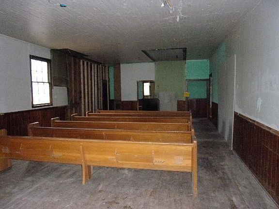 Selling "AS IS". Previously a church. In need of repairs, bathroom fixtures, & some flooring. Original flooring is hardwood. New wiring and septic tank. Six rooms, concrete block foundation. Nice flat lot with some fencing. Pews stay with the building. Chairs to be left only if buyer intends to use building as a church.