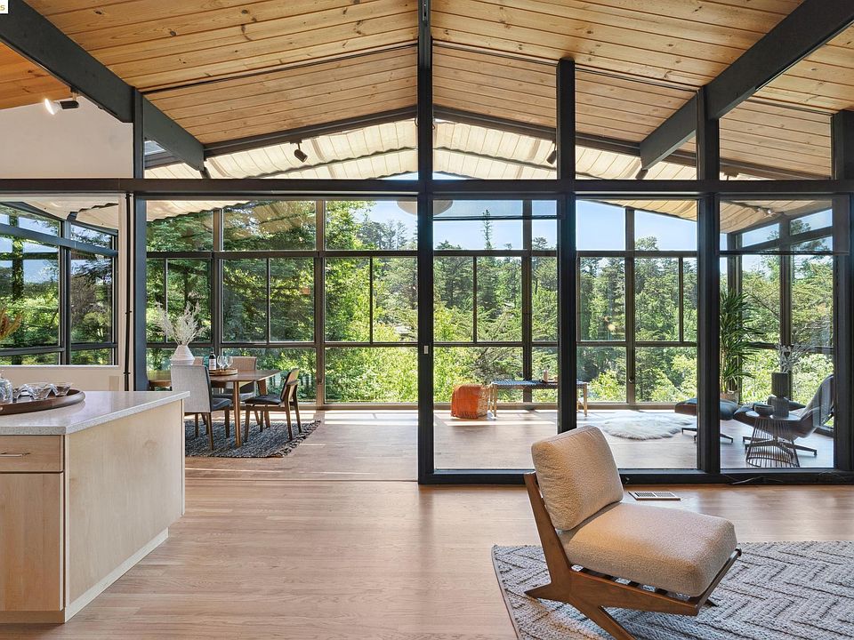 2255 Arrowhead Drive embodies Mid-century modern-era architecture in stunning ways throughout the home. Entering the front door, you are greeted with vaulted ceilings and a wall of floor-to-ceiling windows. The spacious living room and sun room offer possibilities for entertaining guests, hosting dinners, carving out a serene reading nook, and enjoying canyon views. The kitchen which features a mix of well-kept period cabinets with modern appliances and finishes, extends into the common area with a built-in island buffet and ample storage cabinets. This custom-built home features 2 bedrooms and a full bathroom on the entry-level, as well as a generous ensuite bedroom downstairs with a private sitting deck, large closet, and a full bathroom. The lower level also features an additional large room* with its own entrance. This room was used by the seller as a music room but could also work as a media or home office space. Being up on the hill does not inhibit enjoying the outdoor areas of the property. The home has an expansive deck with built-in benches, a sauna, and a gardening work table with a sink. Just minutes to Montclair Village, with a direct route up Shepard Canyon, this special home is a peaceful retreat worth seeing! Buyer to investigate.