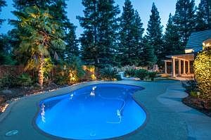 cb2782 Elegantly renovated home w/a designers touch. Open island kitchen w/granite slab & stainless appliances, new plumbing & lighting fixtures, imported cherry wood flooring thru-out. Entertainers delight: sparkling pool & inground hot tub w/glass block waterfall, several fountains, outdoor kitchen w/fireplace. Other features include: tankless water heater, solar tubes, skylight,