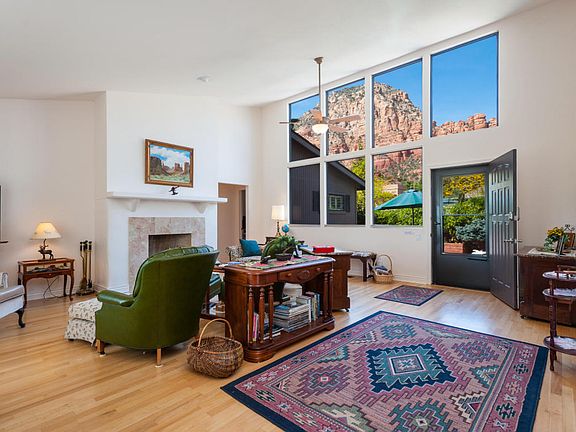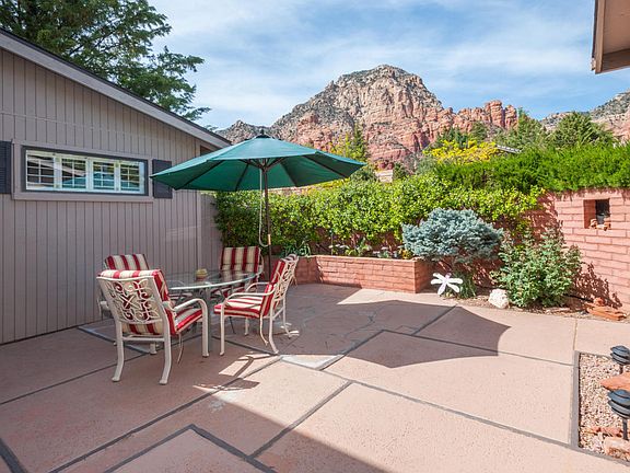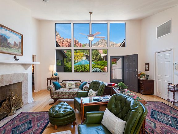 Feel as though you are on perpetual holiday in this delightful and beautifully appointed home with breathtaking red rock views. Relax in the serenity of the lush, enchanted backyard gardens with their own rejuvenating ''vortex.'' Revel in the glory of Thunder Mountain from the front patio while enjoying your morning coffee or visit with birds in the afternoon over a glass of wine on the grand back deck overlooking the charming gardens. Updated in 2003 with a brand new kitchen with sumptuous granite counter-tops, luxurious hardwood floors, beautiful fireplace, and upscale finishes throughout, this home is a perfectly comfortable full-time residence or ideal vacation spot. It has, in fact, been a popular part-time vacation rental property, drawing rave reviews and devoted fans. Come see why.As described by the present owner:"Front patio views and the great room view treats one to the "Wonders of Nature" with sun constantly changing shadows on Thunder Mountain. The gift of waking up every morning, seeing the sun identify the many variations of color and rocky surface of Thunder Mountain is indeed a special way to start the day.End the day in the great room viewing the evening sky creating a different landscape on Thunder Mountain, moment by moment, fills one's soul with the beauty of nature and a great appreciation for the day.You feel a special appreciation for life while viewing the delicate landscape of the backyard knowing each rock was individually placed by the hands of someone who appreciates the special effects of Sedona's Red Rocks. There is a peaceful feeling of appreciation for good health and happiness within, as you follow the pathways of nature in the delicate, well maintained landscaping...It is truly a "vortex" of nature right here at this home."
