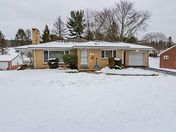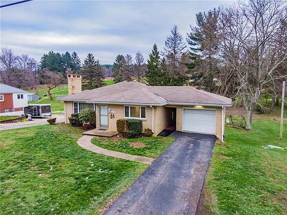 Great brick ranch on a nearly 1 acre lot, close to Route 28! Eat in kitchen with raised panel oak cabinets and laminate counter tops. Living room features a beautiful fireplace and large picture window for abundant light. Two bedrooms on the main level both feature bright corner windows. A third bedroom is in the finished basement. HUGE game room with fireplace and room for all of your entertainment activities. Cozy side porch is accessible from the living room. Parking features a 1 car attached garage and a 2.5 car detached garage. Basement features large workshop area and laundry room.