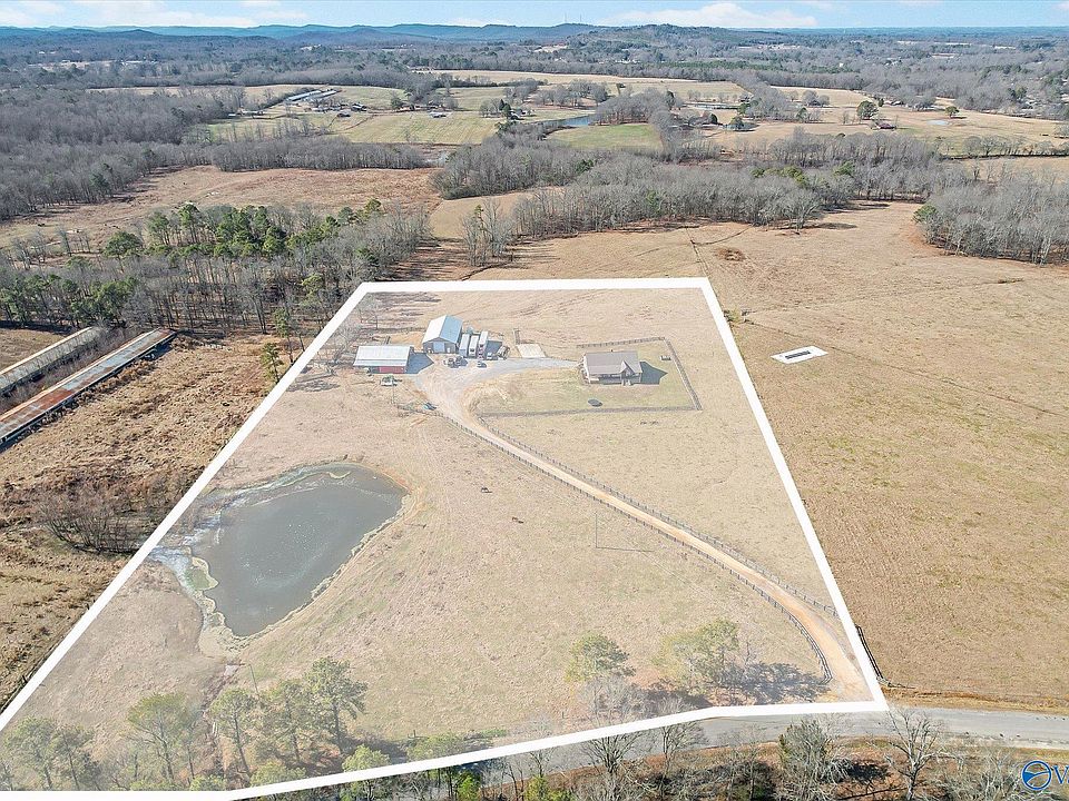 Look at this custom 3BR/3Bath home situated on 10 beautiful acres with a pond just outside of the Boaz city limits. Spend time hosting your guests in the large living room with vaulted ceiling and stunning fireplace or cook your favorite meals in the dine-in kitchen with pantry area. Master BR makes for a perfect retreat with 10 ft ceilings, private en suite bathroom with double vanities and step-in custom steam shower, & large walk-in closet. Two additional bedrooms along with a bonus room upstairs provide all the additional space you may need. Large detached workshop is equipped with water & power while the large detached cattle barn has water & an office space that is heated & cooled.