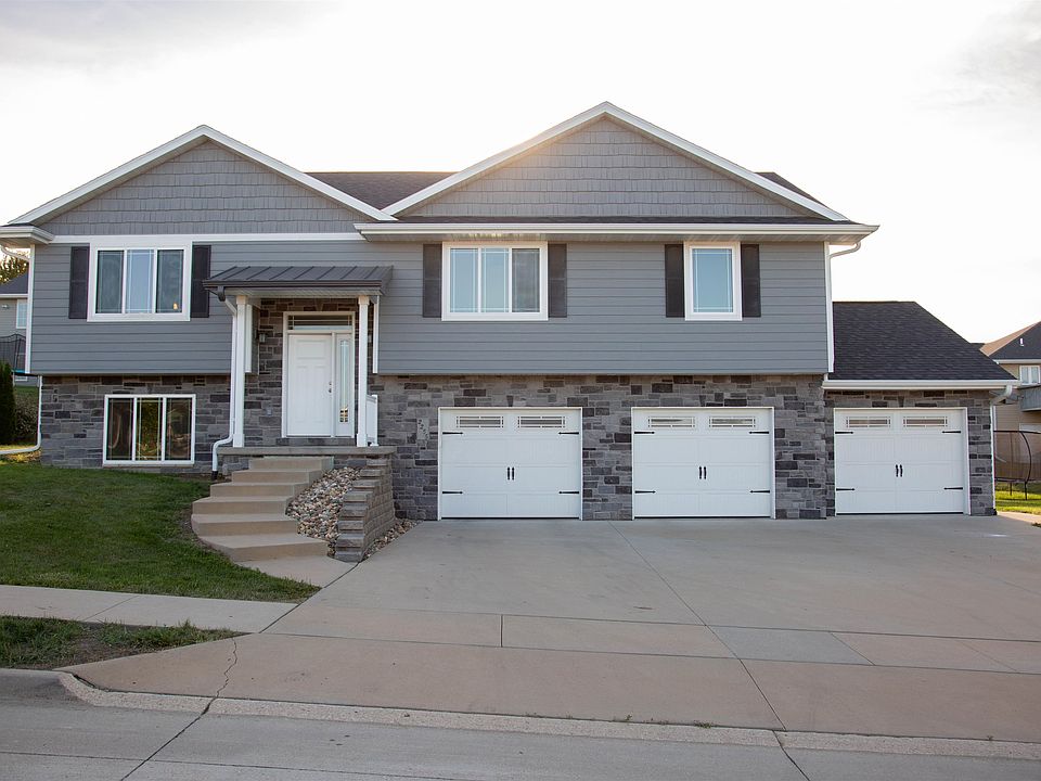 Spectacular big, bright and open floor plan, 4 bed, 3 bath, 3 garage split level home. The main floor boasts a large island and dining area with gorgeous granite counters, built in pantry, convenient main floor laundry, incredible master suite, 2 additional bedrooms share a full bath on the main floor. Brand new stainless steel kitchen appliances! Enjoy gorgeous nights on the deck off the dining area, complete with stairs for convenient access to the backyard! Beautiful neutral color palette. Completely finished lower level with a 4th bedroom/ office, 3rd full bath and family room. Huge 1200sf of garage! $399,900. Walking distance to newest schools. Owners are licensed Realtors.