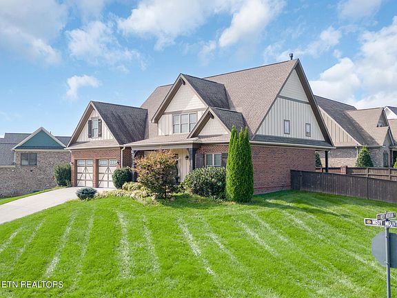 Discover your dream home in the sought-after Covered Bridge Neighborhood located in Hardin Valley! This stunning Craftsman-style residence showcases exceptional craftsmanship with rich woodwork, a striking stone fireplace, and an elegant staircase that makes a statement. The spacious interiors feature soaring ceilings, a brick kitchen floor, upgraded custom cabinetry, an island, a cozy breakfast nook, and a large walk-in pantry for ample storage. The main-level primary suite offers a private retreat with a luxurious ensuite bathroom, including a walk-in shower, soaking tub, dual vanities, and a generous walk-in closet. Additional main-floor conveniences include an office, formal dining room, half bath, and a laundry room. Upstairs, you'll find two more bedrooms, a versatile 4th bedroom or bonus room, and a Jack-and-Jill full bath. The home offers abundant storage throughout. Enjoy the community's many amenities, such as lawn care, scenic creekside walking trails, a refreshing pool, and a welcoming clubhouse.
