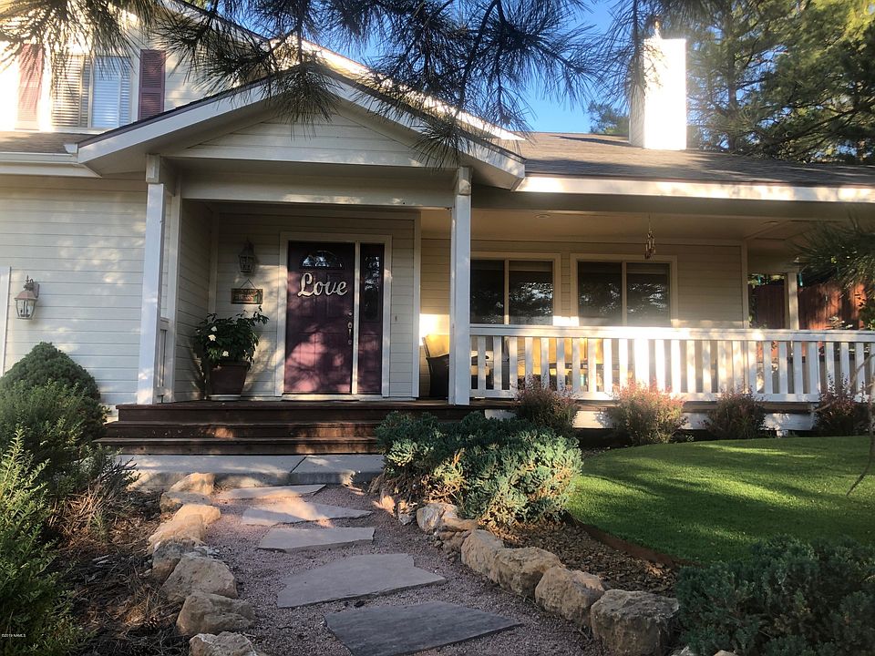 Situated on one of Walnut Ridge's most desirable cul-de-sac lots, this home welcomes you with a gorgeous front porch and no-maintenance premium astro-turf front lawn. This immaculate home has upgrades throughout, including a new (2018) A/C unit (A/C is rare in Flagstaff), a newer roof (2016), a 98% efficiency furnace installed in 2009, supplemented with an EPA Superior Wood-burning Fireplace insert that is rated to heat a 2,500 sq ft home (installed 2016 with 20-year warranty), a show-piece stone wall surrounding the fireplace in the living room, energy-efficient LED lighting, attractive and durable quartz kitchen countertops, custom alder wood kitchen cabinets, premium 18x18 floor tile, and newer appliances that go with the home.